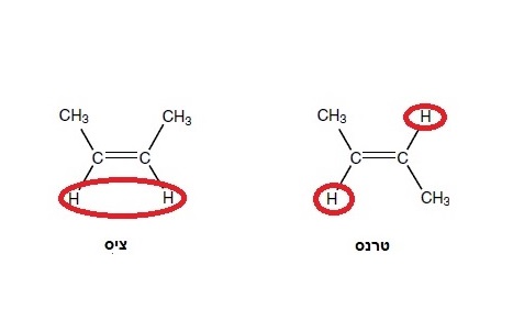 מה שגורם לכיפופים בשרשראות הלא-רוויות הוא המבנה של הקשרים הכפולים לאורך השרשרת. בעוד שקשרים יחידים הם גמישים, והאטומים סביב הקשרים מסתובבים כל הזמן ומשנים את מקומם, ומתאימים את עצמם לתנאי הסביבה, קשר כפול הוא קשר קשיח. לא ניתן לסובב את האטומים סביב ציר הקשר הכפול ולהחליף את מקומם במרחב. לכן, חשוב מאד אם שני המימנים השכנים בקשר הכפול נמצאים זה לצד זה או זה מול זה (ראו ציור 2). אם הם נמצאים זה לצד זה, הקשר מכונה קשר ציס. אם הם זה מול זה, הקשר הוא קשר טרנס. (חשבו למשל, על הביטוי "טרנס-אטלנטי").