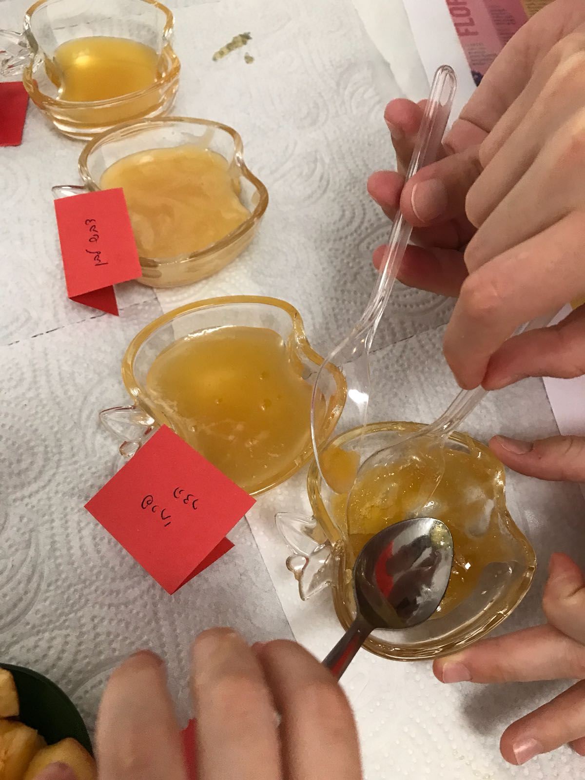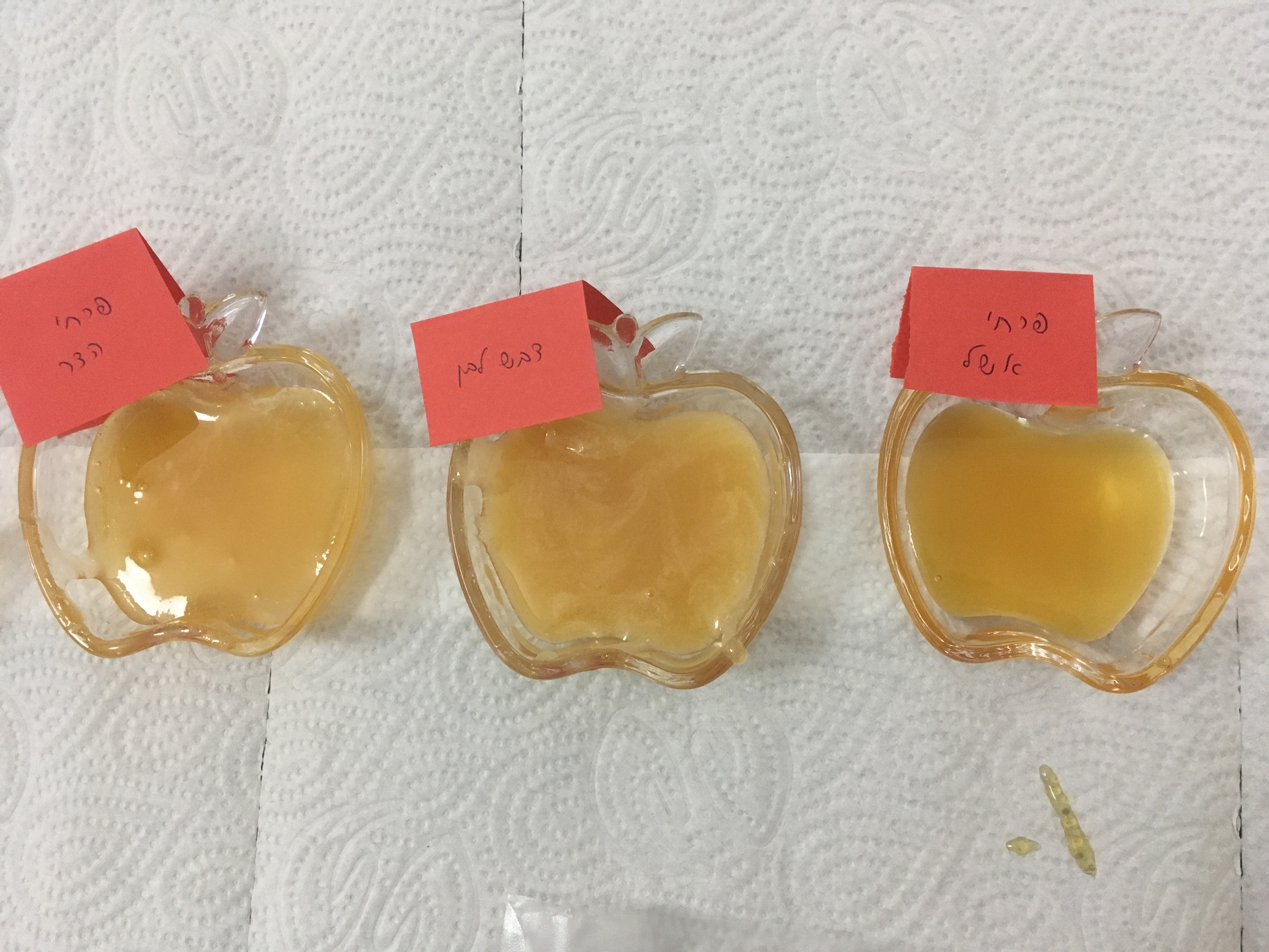 * בטעימה המשפחתית שלנו, טעמנו שישה סוגי דבש: דבש פרחי בר, הדר, זעתר, אשל, וליצ'י, כולם מקומיים, וכן "דבש לבן", שמיובא מאתיופיה. דבש זה מופק מפרחים שגדלים באיזור טיגריי (Tigray) בצפון אתיופיה, ככל הנראה מתערובת פרחים של צמח ממשפחת המרווה ופרחי סברס.