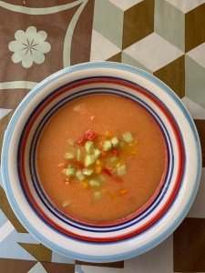 את הגספצ'ו המקורי מכינים עם פרוסות של לחם יבש. יש מתכונים שמשתמשים בפירורי-לחם. בעיני הוא טעים מאד עם חלה. ההשריה מרככת את הלחם וכך קל יותר לרסק אותו (ראו שלב 4). הלחם מסמיך את המרק ונותן לו מרקם קטיפתי. להמשיך לקרוא